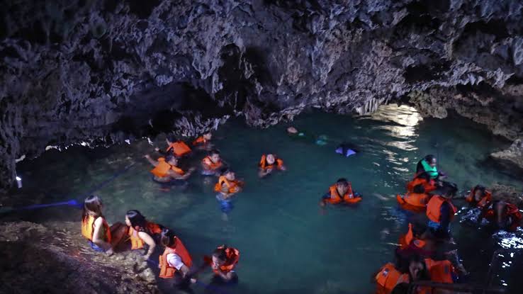 Kailangan munang maglakad bago marating ang kuweba at habang patungo sa kuweba ay mayroong gabay na sumasama sa mga bisita at mga babala na nakapaskil. Sa pagbaba sa kuweba ay kailangang ingatan ang ulo upang hindi mauntog. Madulas din ang daanan kaya dapat maglakad nang maingat o dahan-dahan. Pagkadating sa kuweba ay mamangha ang mga tao sa linis at linaw ng tubig. Malalim ito kung kaya’t hindi hinihikayat ang mga taong hindi marunong lumangoy na lumusob sa tubig nang walang suporta gaya ng life vest. Mahirap makakuha ng mga litrato lalo na kung ang lahat ay nasa tubig at walang kukuha ng litrato. May paliguan din sa Enchanted Cave ngunit kailangan munang mag-igib ng tubig mula sa poso.